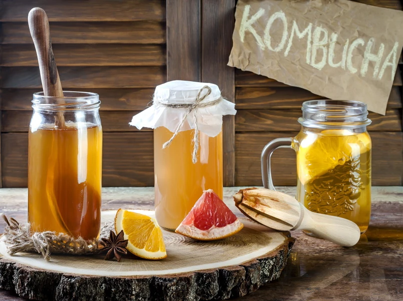 Kombuchą przede wszystkim określamy sfermentowany napój sporządzony ze słodzonej herbaty, który jest jednym z najbardziej trendowych produktów żywieniowych ostatniego sezonu, popularną alternatywą dla lemoniady. Napój herbaciany kombucha można kupić w najmodniejszych lokalach i sklepach w wersji klasycznej lub owocowej. Ze względu na właściwości zdrowotne i walory smakowe niezwykle cenione jest też przyrządzanie kombuchy do picia samemu w domu z użyciem tak zwanego grzybka herbacianego. Jak smakuje kombucha? Napój sam w sobie ma słodkawo-kwaśny smak, jest naturalnie lekko gazowany, najlepiej smakuje schłodzony. Smak kombuchy można wzbogacić dodatkiem owoców lub mięty.