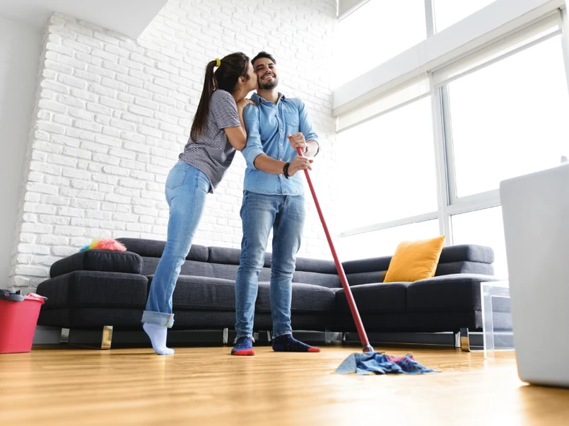 Według badań [2], około 35% par mieszkających ze sobą sprząta dzieląc się tym obowiązkiem. Najczęściej dzielimy się gruntownymi porządkami, takimi jak mycie okien czy trzepanie dywanów, ale także zmywaniem naczyń i wyrzucaniem śmieci. A przecież dobrze się sprząta razem!