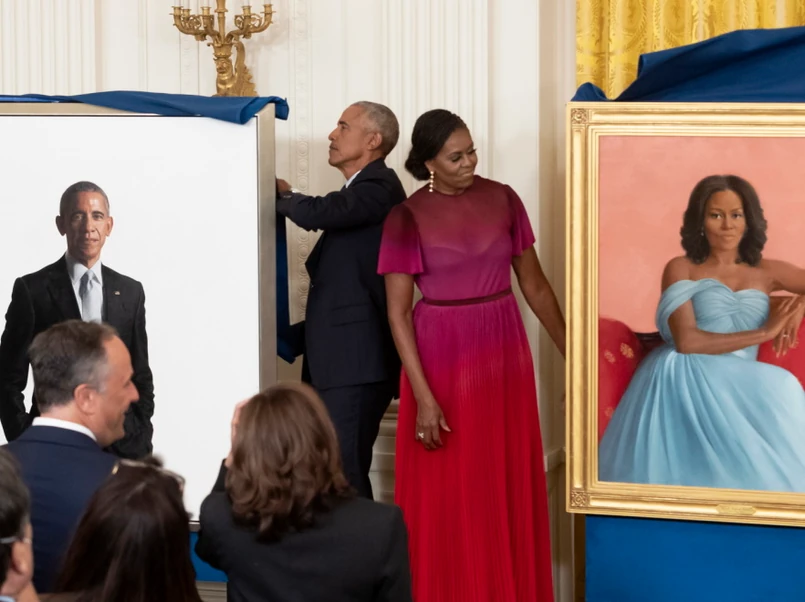 Piękną długą suknię była pierwsza dama USA połączyła z dość ekstrawagancją fryzurą. Na jej głowie można było zobaczyć liczne warkoczyki zaplecione tuż przy skórze. Zobaczcie całościowy efekt stylizacyjny Michelle.