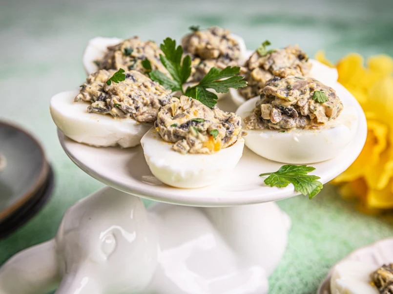 Samo w sobie jest bardzo zdrowe, zawiera 18 z 20 potrzebnych człowiekowi aminokwasów oraz żelazo i witaminy A, D, E, K, B12, B1, B2. Jednak w ciągu dnia możemy zjeść bezkarnie maksymalnie dwa do trzech jaj, jeśli zależy nam na ograniczeniu kilokalorii. A to niezwykle trudne w Święta, kiedy wzrok przyciągają apetyczne potrawy będące „wariacjami na temat jaj”. Jeśli zatem nie zamierzasz sobie niczego odmawiać, proponuję wykorzystać jajka przepiórcze. Pod względem gramatury jedno kurze jajko odpowiada 4–5 przepiórczym.