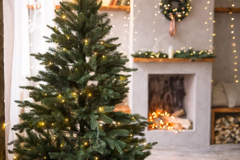 Choinka nie powinna stać przy kaloryferze, kominku ani nawiewie ciepłego powietrza. Nawet krótka ekspozycja na wysoką temperaturę powoduje szybkie przesychanie gałęzi.