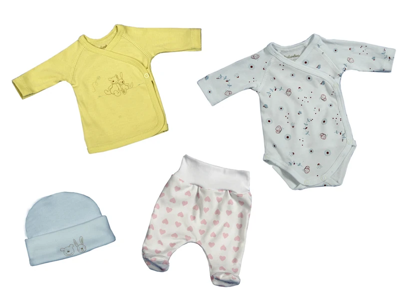 Pełny komfort mają sprawić również praktyczne, wygodne, i bezpieczne rozwiązania, ułatwiające ubieranie maleństwa: body i koszulki zapinane są z boku, półśpioszki mają szeroki elastyczny pas bez użycia gumki, który delikatnie otacza brzuszek maluszka, pledzik uszyty jest z 2 warstw bawełnianej dzianiny w odpowiednim rozmiarze, aby takie maleństwo okryć. Słodkie, pastelowe, delikatne barwy wniosą w otoczenie wiele radości. Wszystkie elementy tej kolekcji sprawią, że mały człowiek rozpocznie przyjaźń ze światem w dopasowanych do swojej drobnej postury, wygodnych ubrankach.