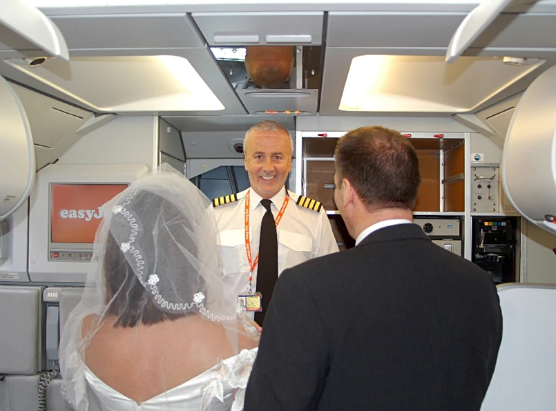 W wielu filmach powtarza się taki oto romantyczny motyw: na pokładzie ekskluzywnego statku kapitan udziela zakochanym ślubu. Życzy młodej parze spokojnego rejsu przez ocean małżeństwa i bezpiecznego portu w swoich ramionach. A cała scena odbywa się w blasku pięknie zachodzącego na horyzoncie słońca. Być może niedługo na pokładzie samolotu easyJet młode pary będą mogły spełnić swoje największe marzenie o nietypowym ślubie w... przestworzach! Tymczasem easyJet sprawdza możliwości, czy piloci mogą być prawnie umocowani do udzielania ślubów.