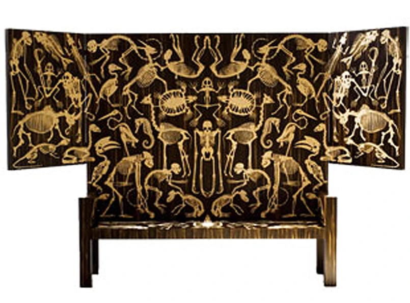 Oczywiście, nigdzie nie jest powiedziane, że ta ławka nie nadaje się do salonu, sypialni czy choćby kuchni. Autorem mebla jest Studio Job. Ława ma wygodne siedzisko, a jej oparcie to istne dzieło sztuki. Projektanci umieścili tam bowiem szkielety stworzeń, które zagrożone są wyginięciem lub już wyginęły.