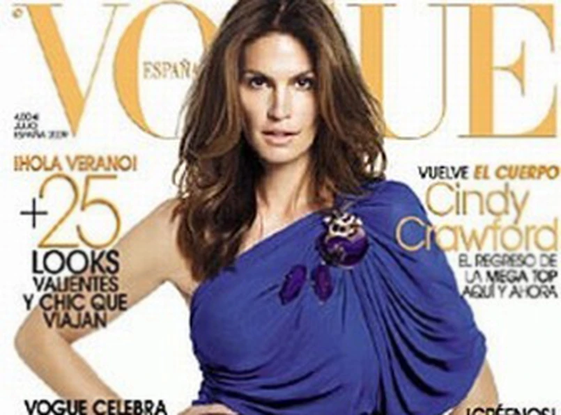 Czarno-biała sesja zdjęciowa dla "Vogue’a" jest energetyczna, choć właśnie pozbawiona kolorów. Zresztą ten monochromatyzm niweluje też zmarszczki Cindy, choć grafik specjalnie jej nie odmładzał. Cindy wygląda tam na swoje lata, powieki już trochę opadają, ale jak słusznie skomentowano, dodaje jej to tylko uroku. Kobieta aby być piękna nie musi przecież być gładka jak brzoskwinia.