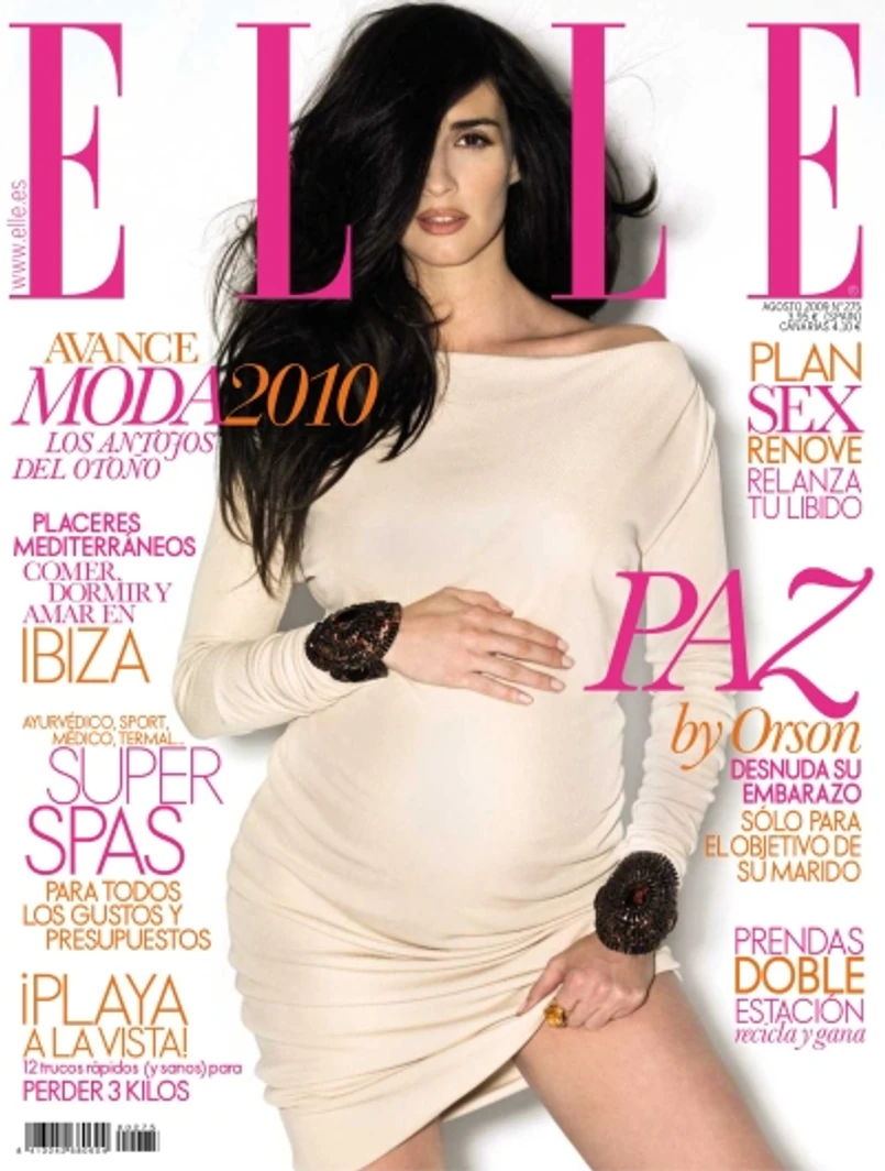 Tymczasem hiszpańskie "Elle" zapragnęło pokazać kobietę w ciąży nie eksponując jej nagości ani nie grając na jej erotyzmie. Hiszpańska aktorka Paz Vega została na okładkę ubrana w stylową, cielistą suknię, która pięknie marszczy się na jej wydatnym brzuchu.