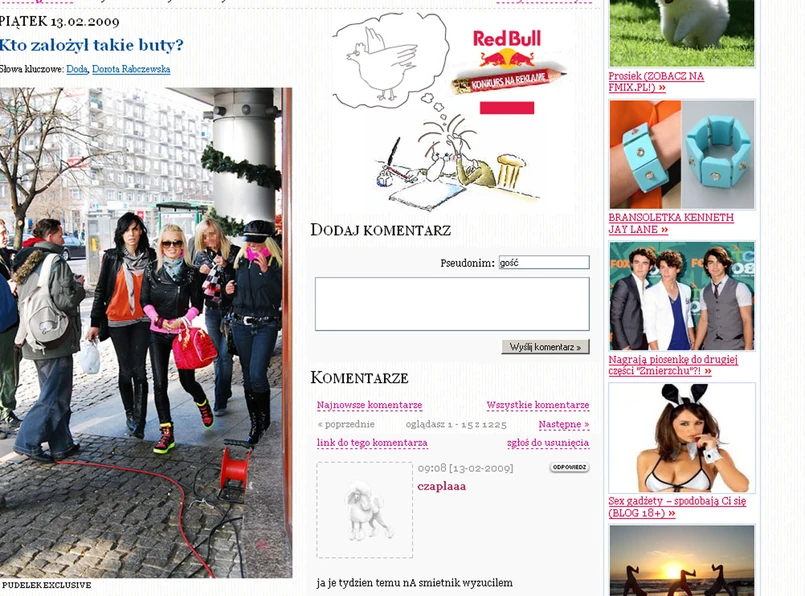 W Warszawie, pod siedzibą TVN często można spotkać gwiazdy największego formatu. Jeden z najpopularniejszych portali plotkarskich wypatrzył tam ostatnio Dodę z towarzystwie menedżerki Mai Sablewskiej i przyjaciółek. Gwiazda przeparadowała, rozdawszy kilka autografów, i mignęła tłumkowi fanów jaskrawymi trampkami i torebką w żarówiastych kolorach.