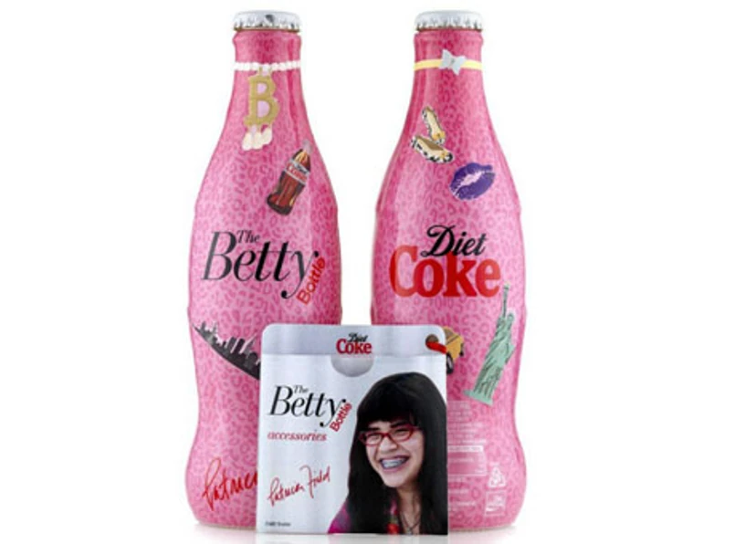 Stylistka wymyśliła bazę: wzór w różowe, leopardzie cętki. Do każdej butelki dodawany jest jeszcze zestaw naklejek – ubranek, żeby ten kto kupi colę, mógł na własną rękę wypróbować kiczowate i gryzące się wzory, które codziennie nosi Betty. Podobno w zestawie znajdzie się też słynne poncho…