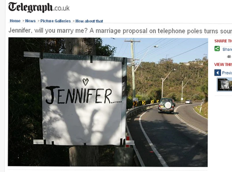 Tajemnicza kobieta o imieniu Jennifer znalazła się na ustach wszystkich mieszkańców miasteczka Bilgola w australijskiej Nowej Południowej Walii. Przyczyną takiej nagłej popularności stała się seria pięciu billboardów, jakie ktoś umieścił na słupach telefonicznych biegnących obok Barrenjoey Road, najbardziej uczęszczanej drogi w okolicy.