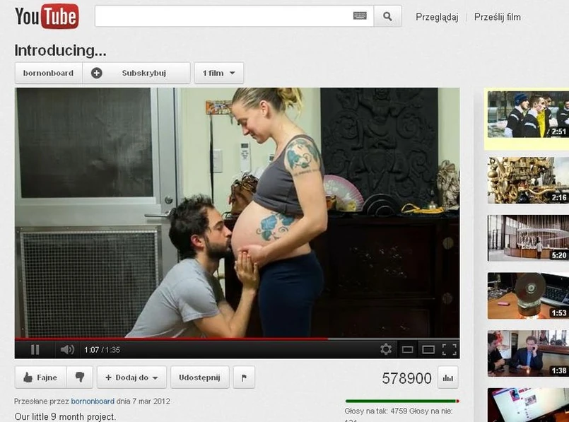 Wideo zatytułowane po prostu "Przedstawiamy..." w bajkowy sposób pokazuje, jak zmienia się kobieta w czasie ciąży. Szczupła kobieta o płaskim jak deska brzuchu pozuje najpierw na tle regału z książkami. Potem w jej otoczeniu pojawiają się kartony kojarzące się z przeprowadzką. A potem się zaczyna...
