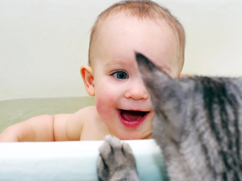• Pierwsze kontakty noworodka ze zwierzakiem powinny przebiegać pod naszą kontrolą. Warto najpierw dać zwierzętom powąchać np. śpioszki naszego brzdąca czy obserwować nas przy czynnościach wykonywanych przy dziecku. Wielu rodziców próbuje izolować pupili od maluszka, co jednak jest rozwiązaniem tylko na krótką metę.
