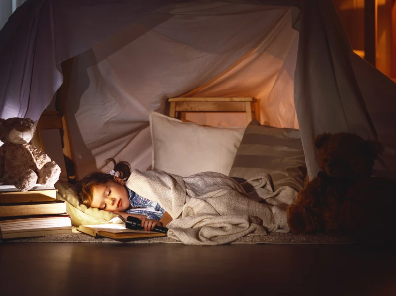 W czwartym roku życia abstrakcyjne myślenie malucha znacznie się rozwija, a w rezultacie wyobraźnia jest coraz bujniejsza. W tym czasie w głowie dziecka może pojawiać się lęk związany z kształtem niektórych przedmiotów w ciemnym pokoju. Koszulka rzucona na krzesło w głowie dziecka może stać się duchem, a wysoka roślina zdaje się złowieszczo wyciągać palce. Między innymi dlatego w tym wieku może pojawić się strach przed samotnym spaniem. Nie dziwi zatem widok dziecka wbiegającego z płaczem do sypialni rodziców w środku nocy i domagającego się wspólnego spania. Jak temu zaradzić? W pokoju dziecka zamontuj lampkę nocną z bajkowym motywem, która dawać będzie delikatne, rozproszone światło. Szykując dziecko do snu, wręcz mu ulubionego pluszaka, w którego będzie mógł się wtulić w przypływie negatywnych emocji. Blisko łóżka możesz zostawić również latarkę, aby dziecko mogło szybko rozwiać swoje wątpliwości kierując światło na przedmiot.