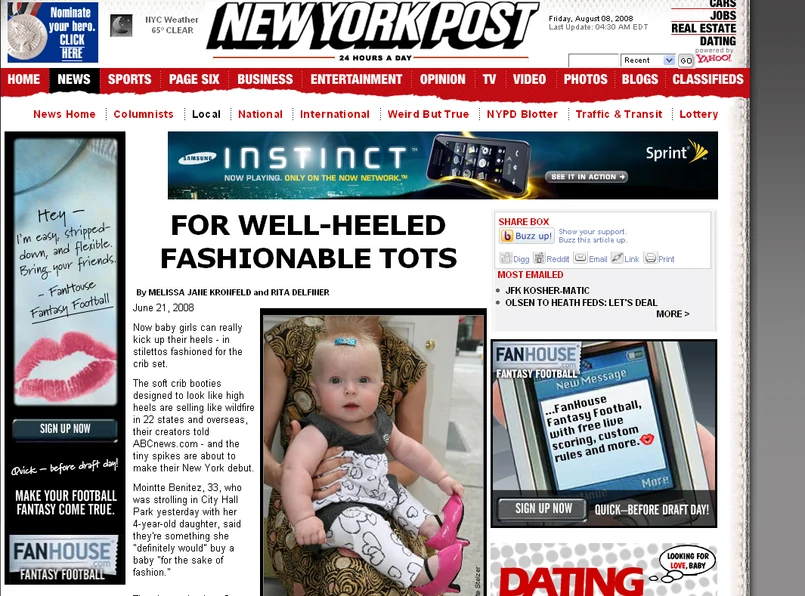 Reakcja na widok niemowlaka w szpilkach może wywołać oburzenie albo rozśmieszyć do łez. Normalna kobieta zacznie się też z pewnością zastanawiać, czy aby matka dziecka nie zwariowała. Ale nie gwiazdy Hollywood, którym pomysł zrobienia ze swoich córeczek starych malutkich bardzo się spodobał. O zakup kontrowersyjnego obuwia podejrzewane są Nicole Richie, Minie Driver, Jamie Lynn Spears i Tori Spelling.