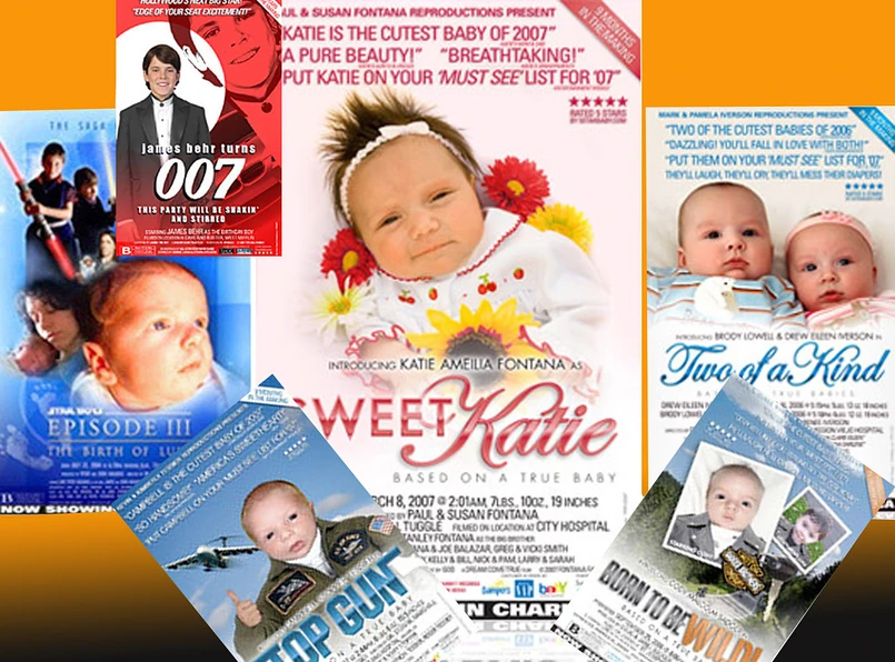 Taką usługę oferuje teraz amerykańska firma 5StarBaby.com. Za kilkadziesiąt dolarów (od 25 do 120, w zależności od rozmiaru plakatu) możesz zamówić z każdego miejsca na świecie, w różnych wersjach językowych, specjalne obwieszczenie o narodzinach. Po około tygodniu otrzymasz je pocztą. Wtedy możesz rozwiesić je po całym sąsiedztwie, albo choćby powysyłać znajomym i rodzinie. Najpierw jednak dostarczasz zdjęcie dziecka, wybierasz kolory i styl, a nawet film, którego parodię chcesz zrobić (przykładowo "Mała Miss"). Potem zostaje już tylko frajda z bycia producentem tego filmu. Jako obsadę drugoplanową możesz dodać tych, którzy wspierali cię podczas ciąży, dziadków, kuzynów, rodzeństwo "gwiazdy". Pan doktor zostaje reżyserem, a szpital, w którym rodziłaś, to plan zdjęciowy. Cytaty z wypowiedzi "krytyków" także będą na miejscu, jeśli będziesz chciała dodać gratulacje od najbliższych.