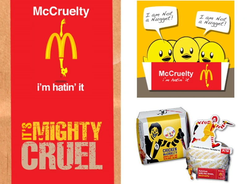 Chodzi o „Unhappy Meal” – pudełka ze specjalnymi zestawami, które otrzymają dzieci przed wybranymi restauracjami sieci McDonalds. Na opakowaniu zamiast roześmianego clowna, młodociani klienci zobaczą przerażającego mężczyznę przywodzącego postać z horrorów: trzymającego nóż w ręku pana McCruelty. Na opakowaniach widnieje też wizerunek zwierząt i klauna wznoszącego zakrwawioną siekierę.