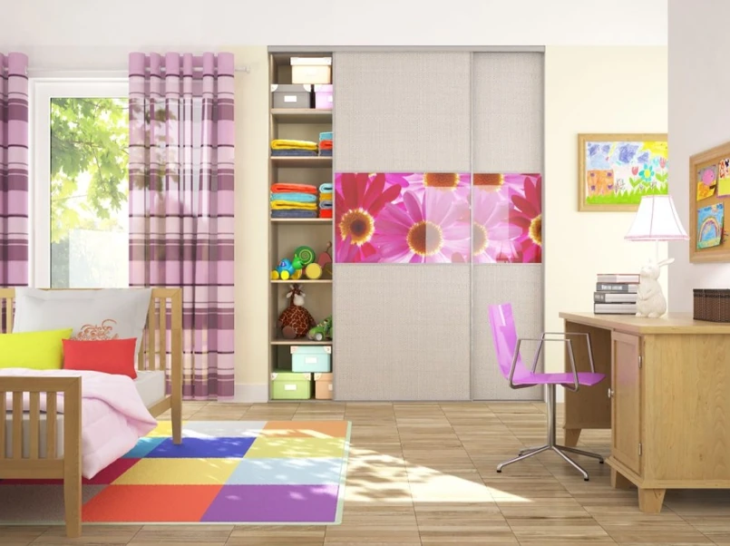 3 Gdy dziecko rośnie i ze szkraba staje się nastolatkiem, chce pokazać całemu światu swoją osobowość i indywidualizm. Drzwi przesuwne wówczas można przearanżować na młodzieżową zabudowę, wymieniając ich wypełnienie. Dziewczynki mogą wybrać coś dla siebie spośród subtelnych odcieni różu i fioletu, chłopcy natomiast zdecydować się na wyraziste postacie bohaterów komiksowych czy elementy graffiti.