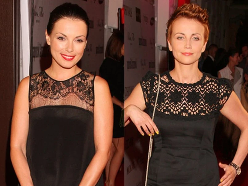 Na otwarciu butiku Paprocki & Brzozowski obie panie zaprezentowały łudząco podobne kreacje. Obie postawiły na małe czarne z koronkowymi aplikacjami przy dekolcie.