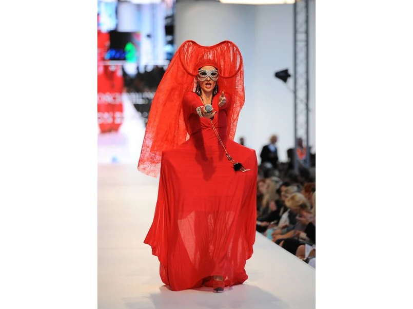 Fantazyjne nakrycie głowy, dziwnych kształtów krynolina, a to wszystko w kolorze intensywnej czerwieni. Do tego wenecka maska oraz wyrazista biżuteria ze srebra i brylancików. Tak niezwykłą kreację zaprezentowała Justyna Steczkowska podczas Warsaw Fashion Street 2011. Piosenkarka wcieliła się w rolę modelki i zaprezentowała niezwykły strój na wybiegu. Oryginalny projekt to dzieło domu mody Forget-Me-Not i pochodzi z kolekcji jesień-zima 2011/2012. Wyrazisty charakter stroju Steczkowska podkreśliła mocnym makijażem i czarnym manicure w gotyckim stylu. Pytanie, czy nie za dużo tego dobrego…