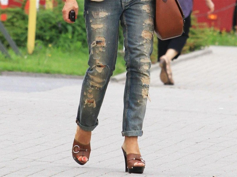 Kinga Rusin ostatnio po stolicy chodziła w podartych spodniach. Takich dżinsów nie powstydziłaby się żadna nastolatka. Czyżby prezenterka pożyczyła spodnie od jednej ze swoich córek?