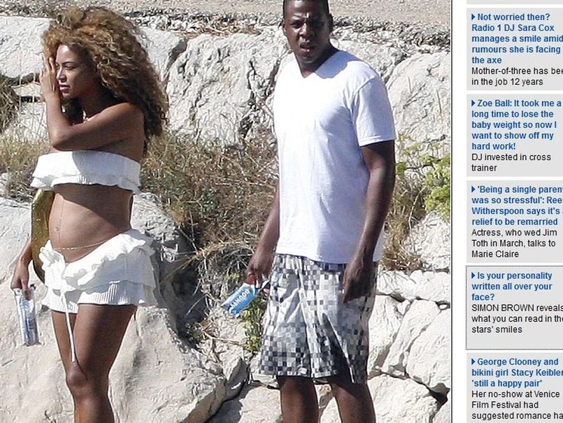 Ogłaszając nowinę o swoim stanie błogosławionym Beyonce zaprezentowała się w luźnej i długiej, zasłaniającej kształty kreacji. Paparazzi jednak przyłapali gwiazdę w większym negliżu. Piosenkarka wraz z mężem, raperem Jayem-Z, wypoczywała na plaży i zażywała kąpieli. Zdobione falbankami bikini odsłoniło nagi, zaokrąglony brzuszek gwiazdy i kształty Beyonce w całek okazałości. Zdjęcia ciężarnej gwiazdy na wakacjach w Chorwacji opublikował brytyjski dziennik Daily Mail. Zobacz!