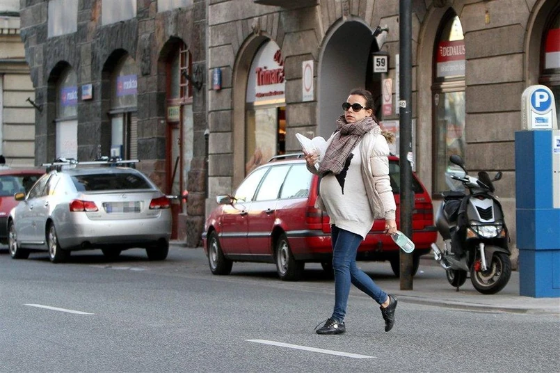 To już ostatni dziewiąty miesiąc ciąży Anny Muchy. Aktorka stara się spożywać duże ilości wody - nawet na ulicy można ją spotkać z butelką mineralnej.