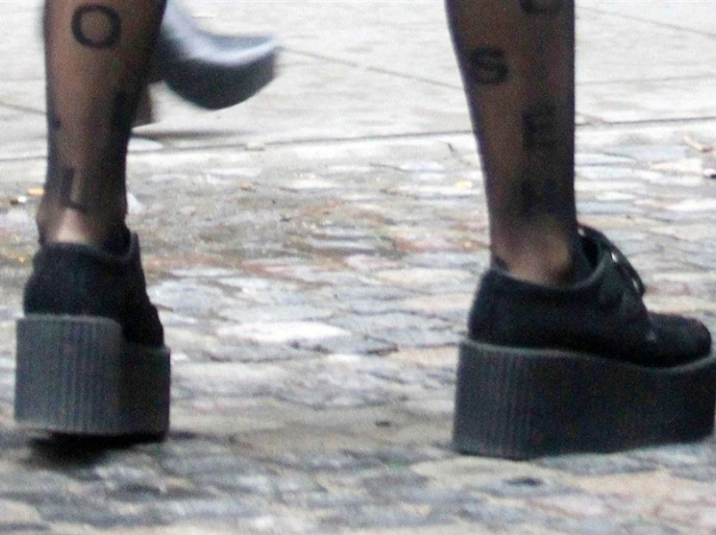 Marina Łuczenko na jednej z ulic Warszawy pojawiła się niedawno w czarnych rajstopach z nadrukowanymi literami, kusej spódniczce i płaszczu - donosi "Fakt".Do tego piosenkarka założyła buty na platformie.