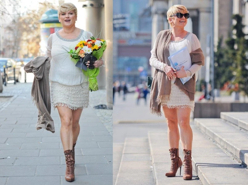 Jeśli nawet pojawią się tacy, którzy stwierdzą, że w tak krótkiej sukience, paniom w tym wieku chodzić już nie wypada, to zapewne większość przechodniów w Warszawie, widząc tak smukłe i zgrabne nogi Kasi Figury, na pewno z takim osądem by się nie zgodziła.