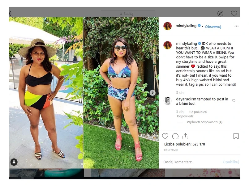- Noście bikini, jeśli chcecie. Nie musicie mieć rozmiaru 0 - napisała.