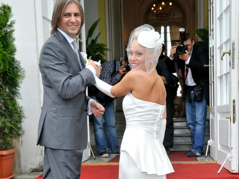 1 Panna młoda wybrała suknię o prostym kroju, pozbawioną „ozdobników”. Pan młody wystąpił w szarym garniturze