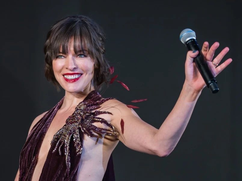 Dołu tej kreacji lepiej nie oglądać... Milla Jovovich w sukience masakrującej figurę. FOTO