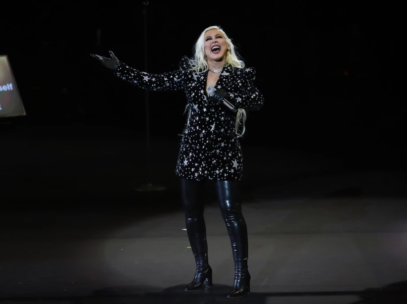 "Schudła, ale nie na tyle, żeby nosić takie spodnie". Internauci krytykują stylizację Christiny Aguilery. FOTO