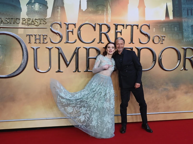 1/3 Maja Bloom i Mads Mikkelsen na premierze filmu "Fantastyczne zwierzęta: Tajemnice Dumbledore'a".