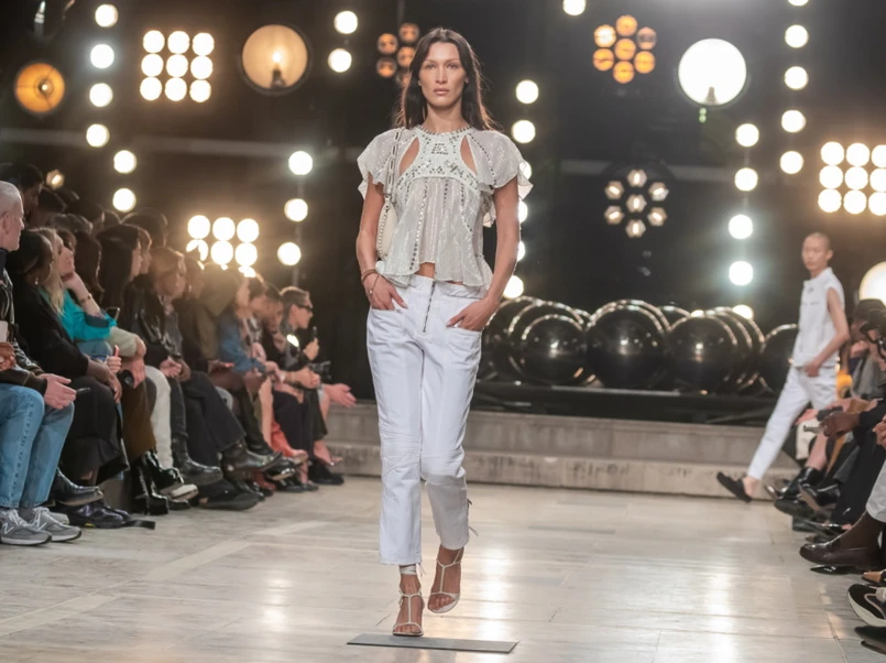 1/3 Bella Hadid na pokazie Isabel Marant w Paryżu.