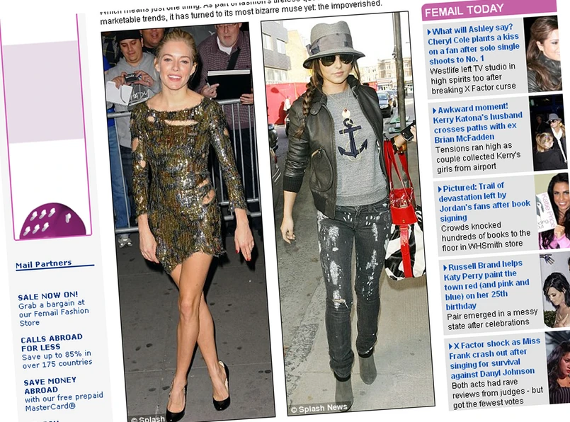 Udowodniła to Sienna Miller, która wystąpiła na przyjęciu z okazji premiery sztuki z jej udziałem („ After Miss Julie”) w sukni z najnowszej kolekcji Balmain. Błyszcząca kreacja wyglądała, jakby ktoś oderwał jej dolną część – co prawda wyeksponowało to piękne nogi aktorki ale mogło sprawiać szokujące wrażenie. Na całej sukience ziały ogromne dziury o nierównych krawędziach. Sienna Miller jest znana z odważnych eksperymentów z modą, to ona jest jedną z prekursorek oryginalnego stylu boho. Czy jej ziejąca dziurami kreacja zapowiada nadejście nowego, bezdomnego szyku? Zobaczymy. Póki co o dreszcz może przyprawić myśl, że ta podarta sukienka kosztowała ponad 16 tysięcy euro…