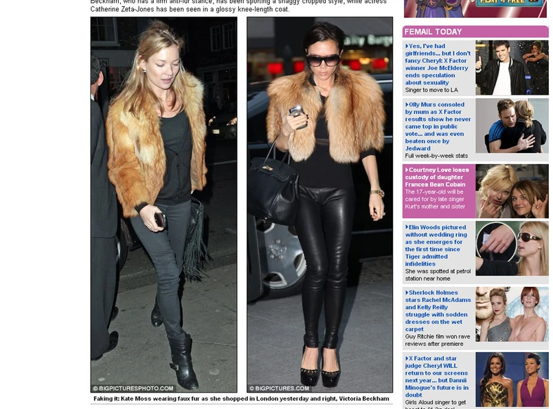 W ostatnim czasie w sztuczne futra przystroiły się między innymi Kate Moss, Victoria Beckham, Kelly Rowland, Liz Hurley, Kelly Brook i Catherine Zeta Jones. Rowland i Hurley zdecydowały się na futrzane kamizelki. Jak pokazuje przykład gwiazd, mogą one służyć zarówno jako okrycie wierzchnie, jak też jako założony na nagą skórę element wieczorowego stroju. Kelly Brook wybrała krótkie futerko, które świetnie prezentuje się w połączeniu z dżinsami i swobodnym strojem, ale równie dobrze wypadnie w bardziej eleganckim zestawieniu.