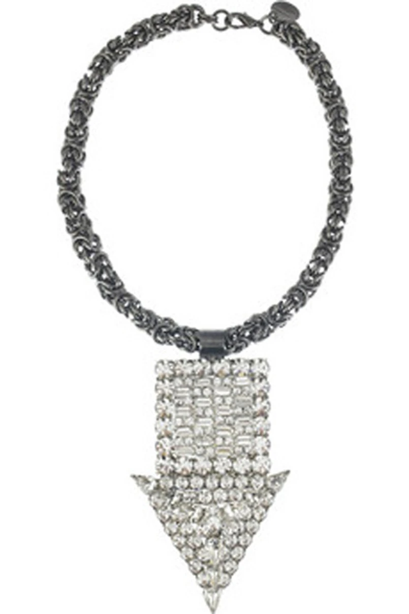 Kolorowa propozycja Malene Birger to prawdziwa wariacja na temat naszyjnika. Wykonany jak naszywana z kolorowych plastikowych koralików kolia jest bardzo wyrazistą ozdobą. Wiesza się go na szyi na grubej tasiemce zawiązywanej na kokardkę. Bardzo wymagający - wszelka konkurencja kolorystyczna jest bardzo niewskazana! W zamian z najprostszej nawet sukienczyny uczyni kreację godną czerwonego dywanu. Cena: ok. 156 euro.