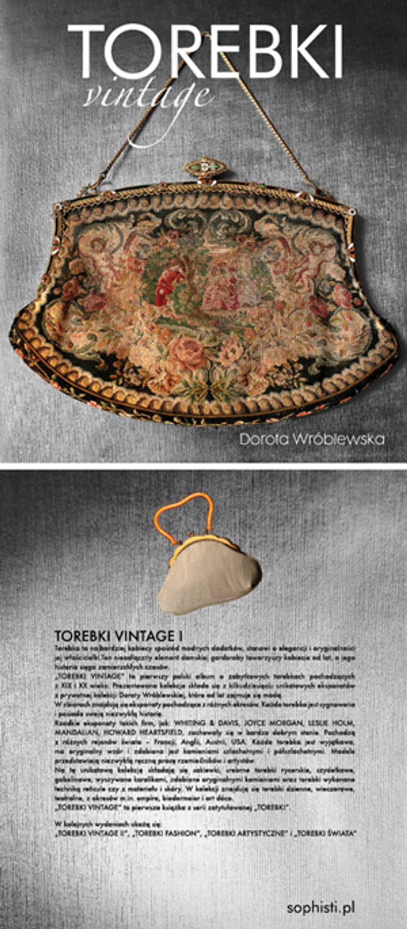 Okazją do tego spotkania jest bowiem nowa seria wydawnicza zatytułowana "Torebki". Jako pierwszy album ukaże się pozycja "Torebki Vintage" autorstwa Doroty Wróblewskiej, szefowej domu mody Forget-me-Not, która zebrała materiały na temat zabytkowych torebek vintage z XIX i XX wieku. Moda na vintage torebek bowiem nie ominęła i każda szanująca się kobieta ma teraz w szafie odpowiednio babciny model.