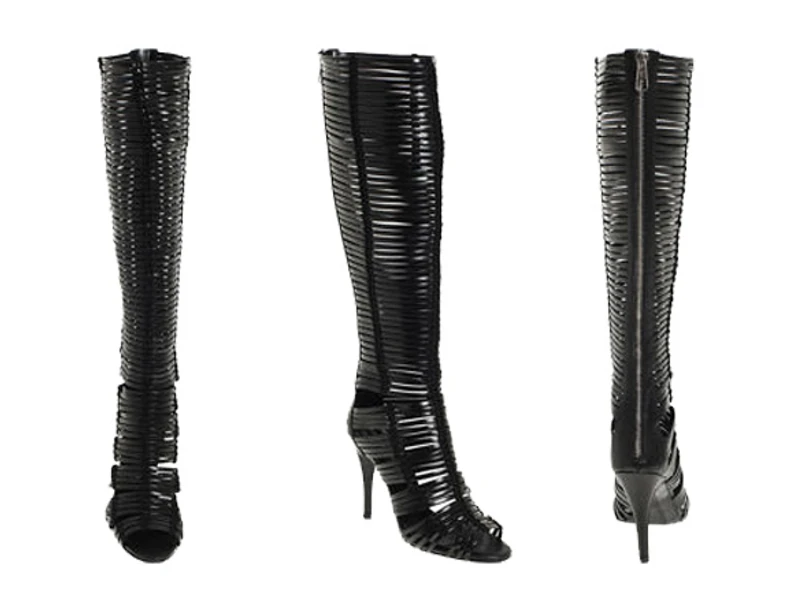 Duet projektantów Mirandy Morrisom i Kari Sigersona nie przebiera w środkach. Jak już iść w trendy, to na całego. Kozaki ich pomysłu są zbroją dla nóg i stóp, które w takiej propozycji wyglądają jak zakute w dyby. Ciało niby oddycha, bo paski nie są zaciśnięte ciasno, ale jeśli weźmie się pod uwagę, że w gorącu stopy puchną, współczujemy ofierze mody, która je zakupi. A nie jest to mały wydatek, bowiem w internetowym sklepie Barneysa buty kosztują 1690 dolarów!