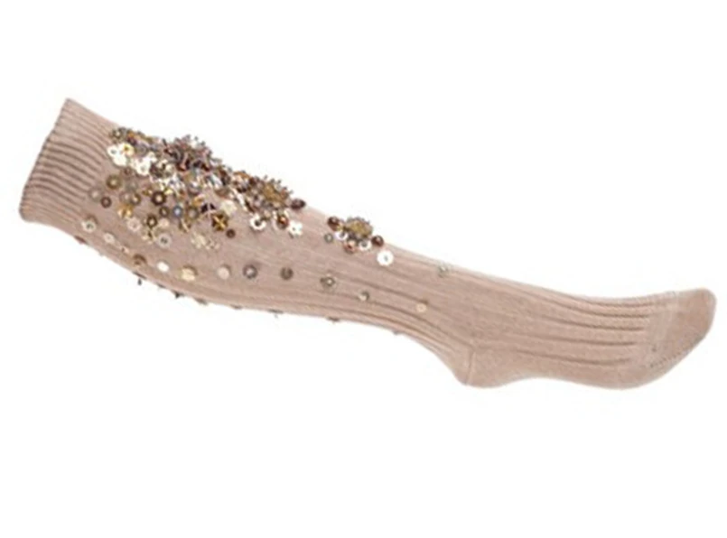 Choć kosztują oryginalnie 245 funtów, my możemy je wykonać za kilka złotych, kupując 2 paczki złotych cekinów i rzeczone kolanówki, które pewnie i tak macie już w szafie.