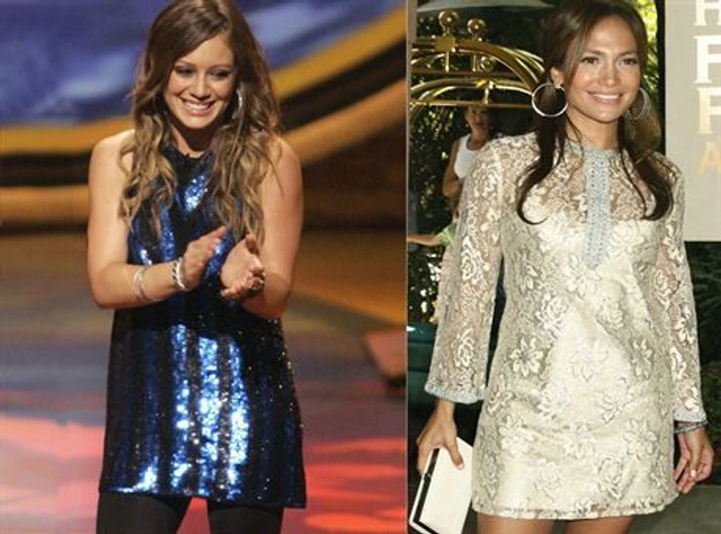 Na prawdziwą fankę sukieneczek w kształcie litery A urasta Hilary Duff. Gwiazda amerykańskiego kina familijnego nosi sukieneczki ala Twiggy do wciąż modnych leggindów lub solo, zawsze jednak do wysokich szpilek.