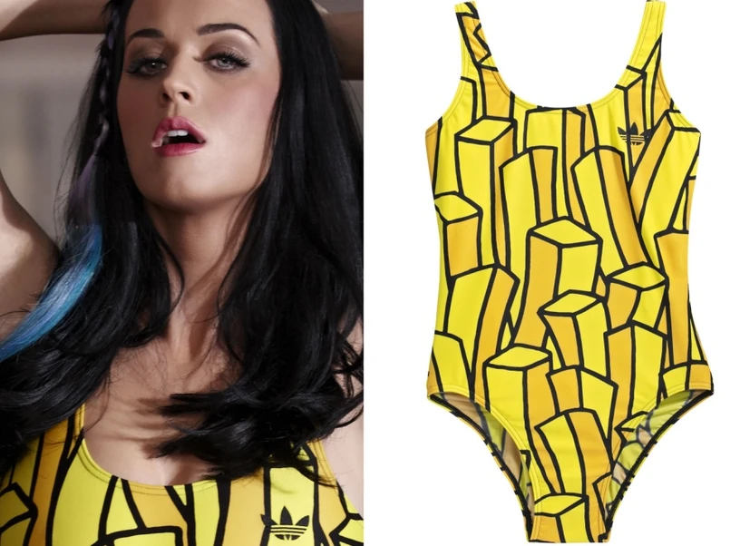 Katy Pery do gustu najbardziej przypadł krzykliwy, żółty kostium z lycry z charakterystycznym wzorem frytek – ulubionym jedzeniem Ameryki. Nic dziwnego! W końcu jest w nim to, czego gwiazda szuka w modzie: humor, oryginalność i kobiecy styl w stylu kultury pop.