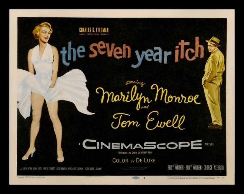 W scenie z filmu Wildera z 1955 r. Marilyn Monroe stoi na chodniku, na kracie wylotu wentylacyjnego metra. Podmuch przejeżdżającego tunelem pociągu podnosi sukienkę do góry a aktorka próbuje, z figlarnym wyrazem twarzy, utrzymać ją we właściwym położeniu.