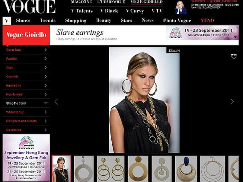 Artykuł został opublikowany na stronie "Vogue Italia" 5 sierpnia. Ilustrowały go duże, złote kolczyki-koła. W krótkim tekście dziennikarka Anna Bassi wyjaśniła trwający od 2010 roku trend na biżuterię tego typu.