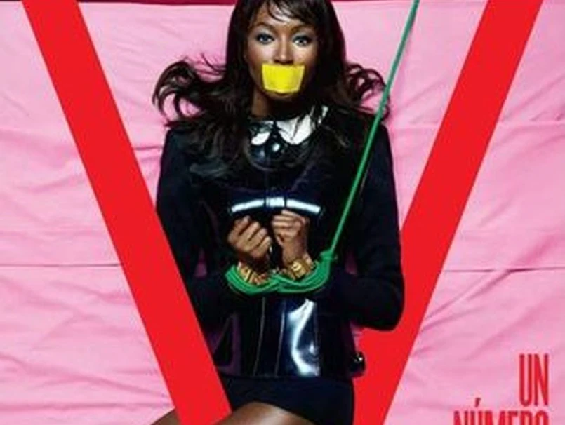 Przypomnijmy, że modelka już kilkukrotnie odpowiadała za bójki i pobicia. To, czego nie udało się zrobić w rzeczywistości, udało się na zdjęciu. Na okładce hiszpańskiej edycji „V Magazine” widzimy topmodelkę symbolicznie poskromioną i uciszoną. Czarnoskóra piękność skrępowana jest więzami, a na jej ustach widnieje knebel. Wszystko – poza strojem modelki – utrzymane jest w przewrotnie radosnych i cukierkowych barwach charakterystycznych dla „V”. Twórcy w bardzo udany sposób „zabawili” się z wizerunkiem Naomi.