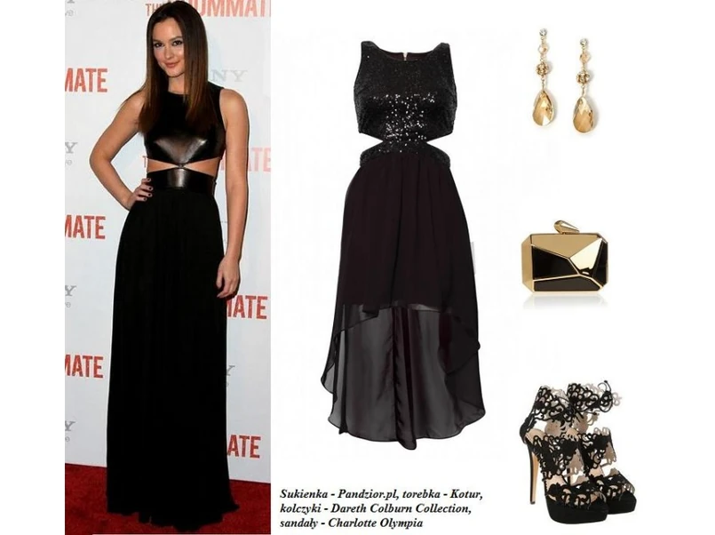 Leighton Meester to jedna z najbardziej stylowych gwiazd młodego pokolenia. Aktorka zawsze prezentuje się wprost obłędnie. Ponad dwa lata temu na premierze filmu „Współlokatorka” Meester pojawiła się w czarnej, charakterystycznie wyciętej sukni Michaela Korsa. Podobny model sukienki można znaleźć w sklepie internetowym Pandzior.pl. Cekinowa góra oraz szyfonowy dół wydają się być idealną propozycją na studniówkę! Elegancko i z pazurem!