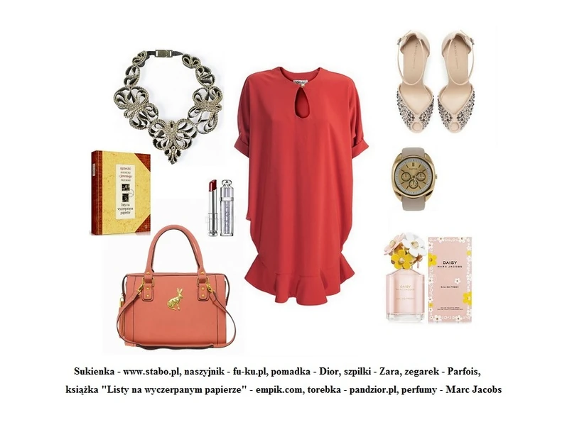 Jesteś kreatywną osobowością, a wiosna zawsze dostarcza ci wielu inspiracji? Zainspiruj się także w stylizacji! Frywolna, pomarańczowa sukienka podkreśli twój twórczy charakter, a solidny zegarek będzie zarówno modnym jak i praktycznym dodatkiem. Stylizacja ta uzupełniona designerskim naszyjnikiem, szpilkami z błyszczącymi czubkami oraz pojemnym kuferkiem ze złotym króliczkiem – stworzy nieziemski look!