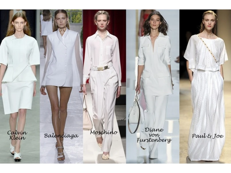 Jednym z dominujących trendów sezonu wiosna/lato 2014 jest monochromatyzm i stylizacje total look. Wszystko, co może stanowić jednorodny kolorystycznie komplet: kombinezony, sukienki, garnitury, utrzymane w jednej barwie sety spódnica plus bluzka wracają do łask. Taka barwna asceza doskonale wydobywa naturalną urodę każdej z nas, stając się dla niej minimalistycznym tłem. Wiosna często faworyzuje biel, tak jest i tym razem. Najjaśniejsza z barw zagościła w większości kolekcji wielkich wizjonerów mody. Calvin Klein, Alexander McQueen, Balenciaga czy Moschino zaprezentowali całe morze modowych inspiracji skąpanych w bieli.