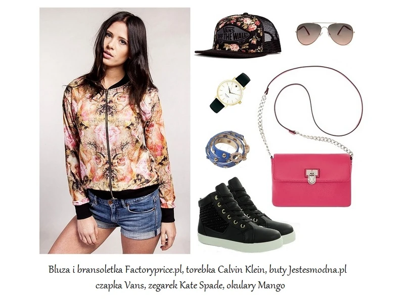Róża – najbardziej romantyczny kwiat na świecie – dobrze wygląda nie tylko na zwiewnych sukienkach, ale też bluzach typu bomber (główne zdjęcie). Bluza o tym kroju zestawiona z jeansowymi szortami, a także wygodnymi sneakersami stworzy stylizację w sam raz na lato. Ten sportowy look genialnie dopełnią przewieszona przez ramię torebka, najlepiej w jakimś soczystym kolorze, czapka z daszkiem (również ozdobiona kwiatowym printem), a także okulary typu aviator.