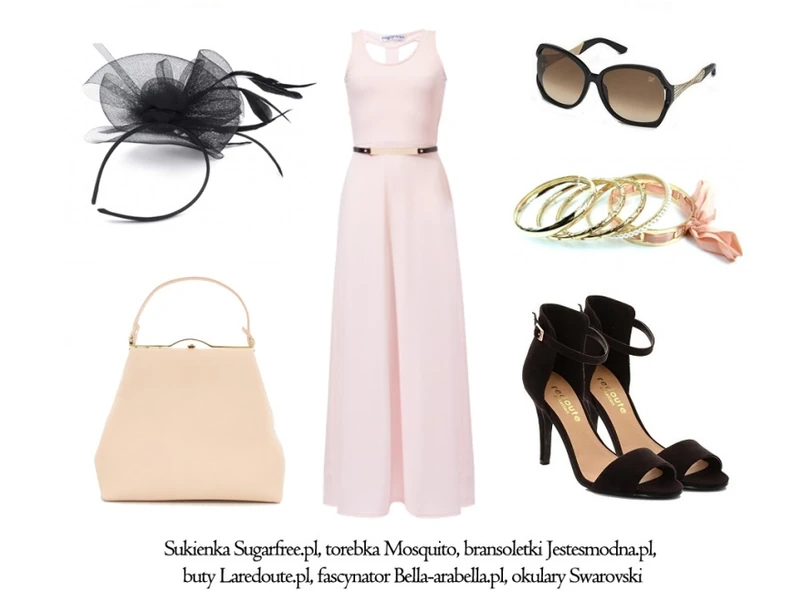 Nasza pierwsza propozycja oparta jest na połączeniu pasteli z czernią, dlatego jeżeli lubicie pastele proponujemy sukienkę w kolorze pastelowego różu (główne zdjęcie). Dodatkowo sukienka maxi świetnie podkreśli talię i wyeksponuje wszystkie atuty sylwetki. Zwiewna i lekka sprawdzi się idealnie nawet w bardzo upalny dzień. Nonszalancji i charakteru całej stylizacji dodadzą nieco awangardowe dodatki w kolorach sukienki. Połączenie czerni i pastelowego różu nie tylko wpisuje się w obecne trendy, ale jest również ponadczasowe.