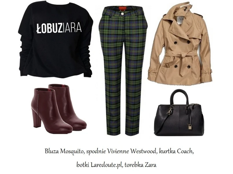 Spodnie w zieloną kratę będą świetnie współgrać z czarną bluzą, klasycznym trenczem oraz bordowymi botkami! (główne zdjęcie)